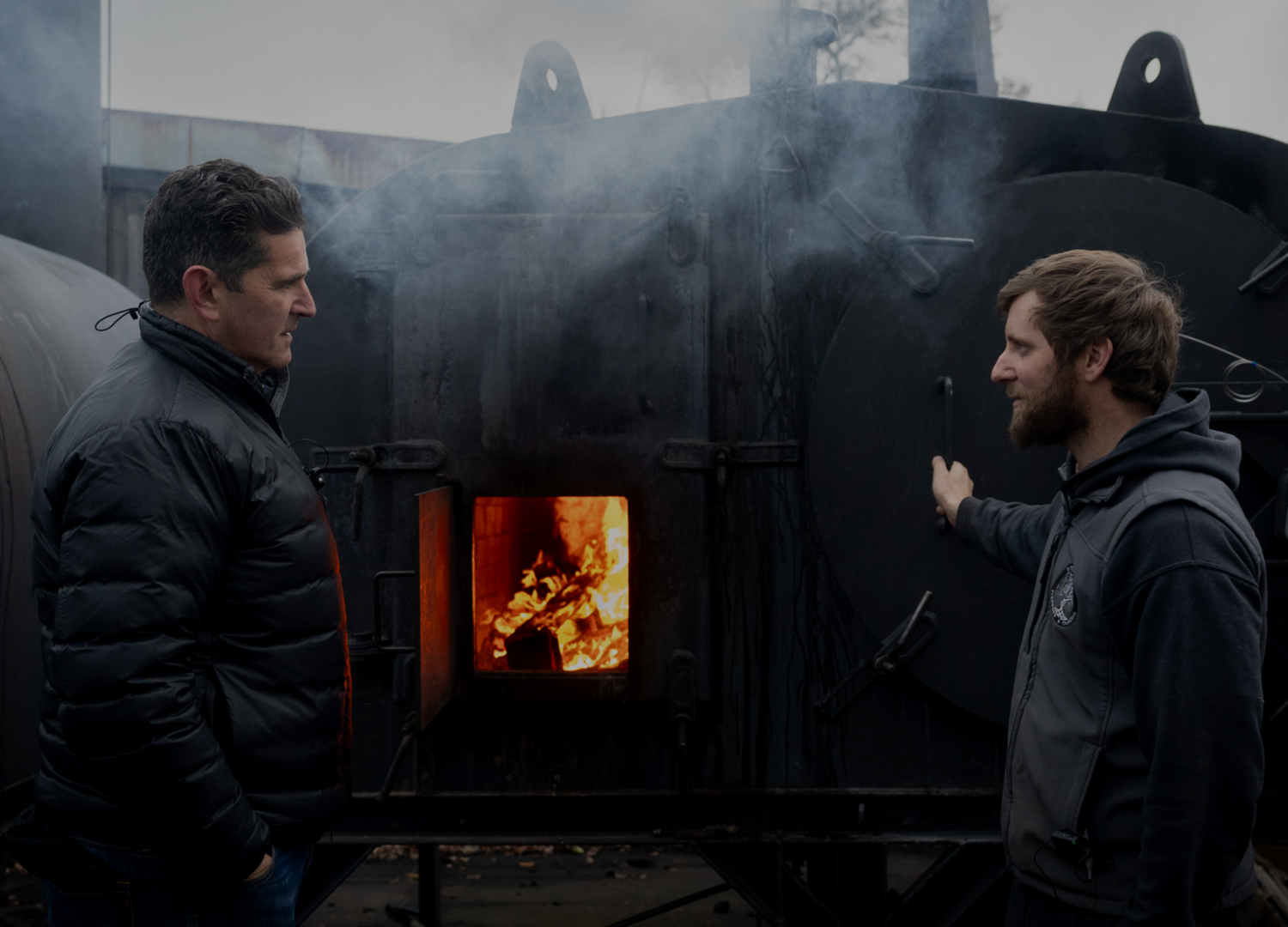 Once loaded and sealed, the retort chamber is super heated from an adjacent fire box, to anywhere from 300°C - 500°C depending on the species of wood. Such high temperatures enable the wood breakdown process - expelling moisture, oils and flammable gases from the wood.