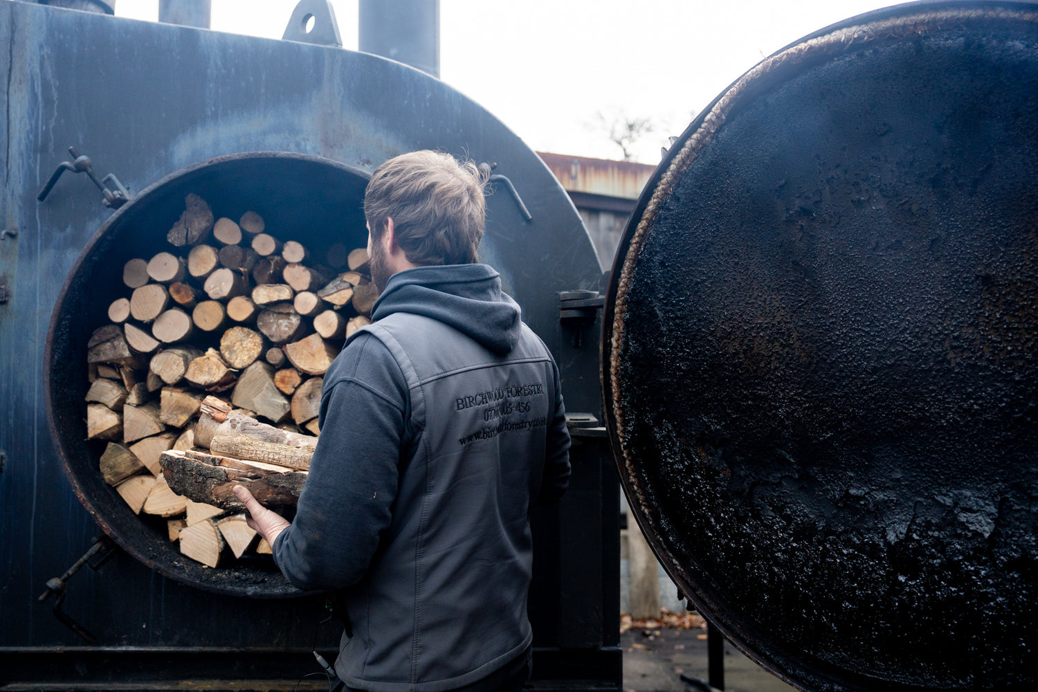 The seasoned logs are split and if necessary, further kiln dried to achieve the perfect moisture levels. The dried logs are then placed systematically into a specialist oven called a charcoal retort (which come in lots of different shapes and sizes).